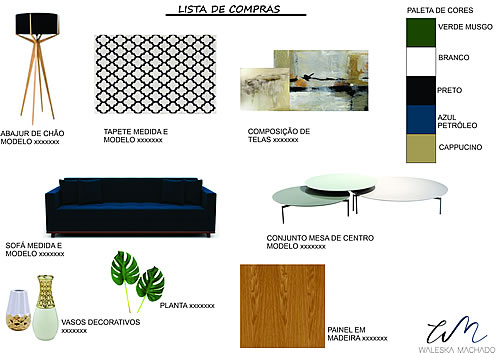 O que o cliente vai receber: Receberá o painel conceitual e a especificação dos objetos escolhidos, para montagem do seu ambiente.